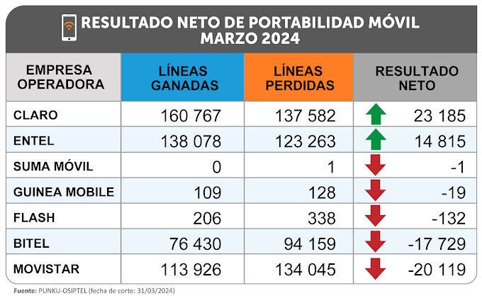 Movistar, Bitel, Flash, Guinea Mobile y Suma Móvil obtuvieron un saldo negativo
