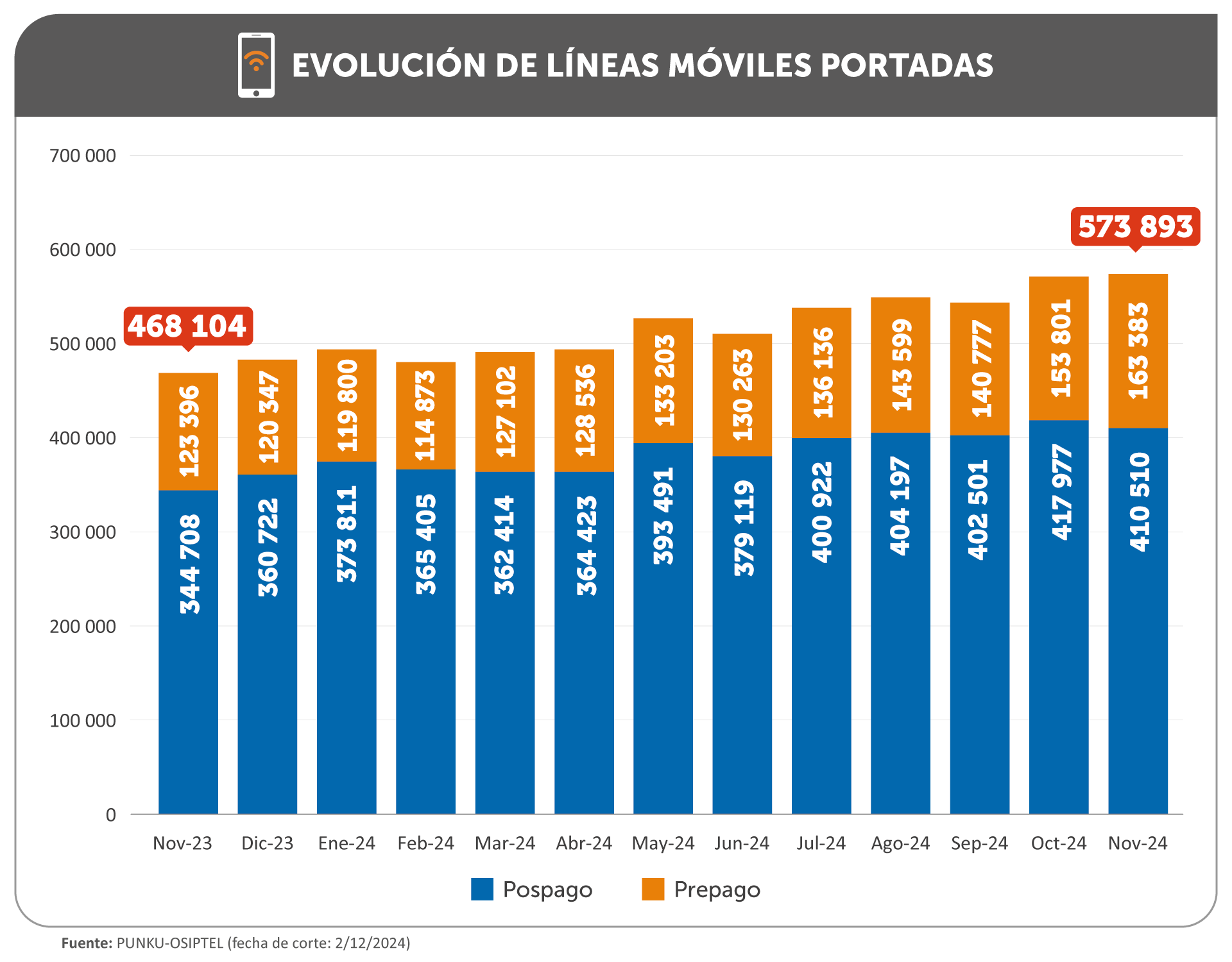 noviembre, 573 893 líneas móviles cambiaron de empresa operadora a nivel